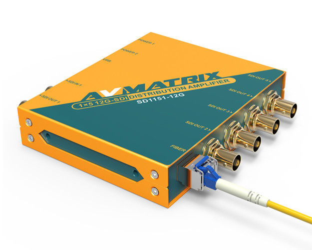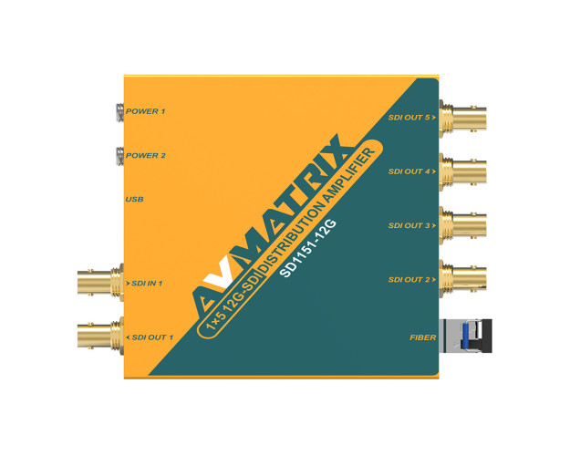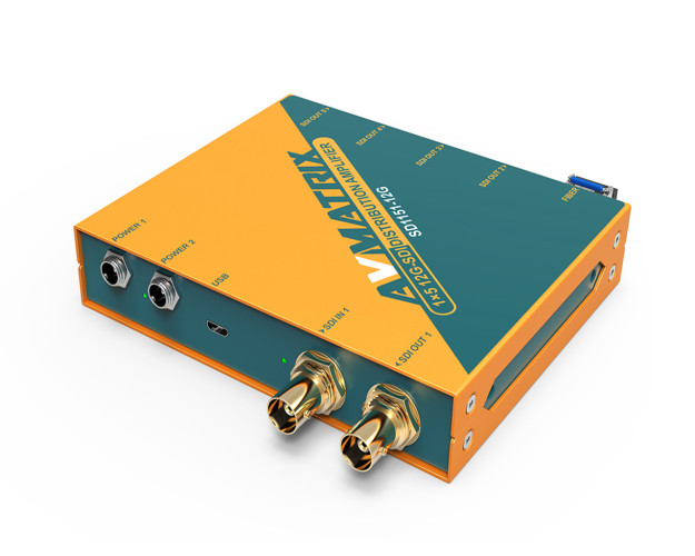 Усилитель-распределитель 1x5 12G/6G/3G/HD/SD-SDI с восстановлением тактовой частоты. Формат входного сигнала SD/HD/3G-SDI определяется автоматически. Устройство обеспечивает компенсацию потерь в кабеле и восстановление сигнала, что позволяет увеличить длину кабеля SDI для SD сигнала: 400 м, HD: 200 м, 3G: 120 м.