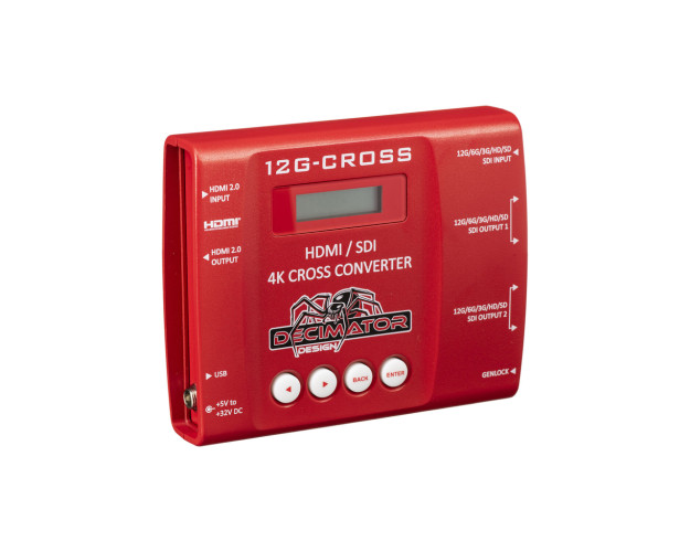 Decimator 12G-CROSS это компактный конвертер с низким энергопотреблением, выполненный в прочном металлическом корпусе. Конвертер оснащен LCD-дисплеем и простой кнопочной системой управления, обеспечивая простой доступ к большинству функций без использования DIP-переключателей или необходимостью носить с собой компьютер, чтобы изменить настройки